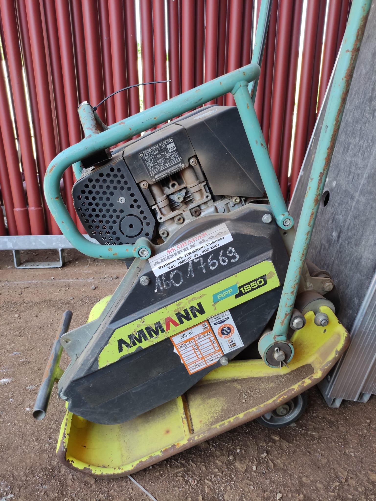 Vibracijska ploča AMMANN APF 1850 FREKVENCIJA: 85 Hz RADNI KAPACITET: 570 m²/h RADNA BRZINA: 25 m/min RADNA DUBINA: 20 cm SNAGA MOTORA: 4.1 kW TEŽINA: 100 kg ŠIRINA: 50 cm MOTOR: benzin (E95) POTROŠNJA: 1 l/h ZAPREMNINA REZERVOARA: 4 l ZAPREMNINA REZERVOARA VODE: 10 l